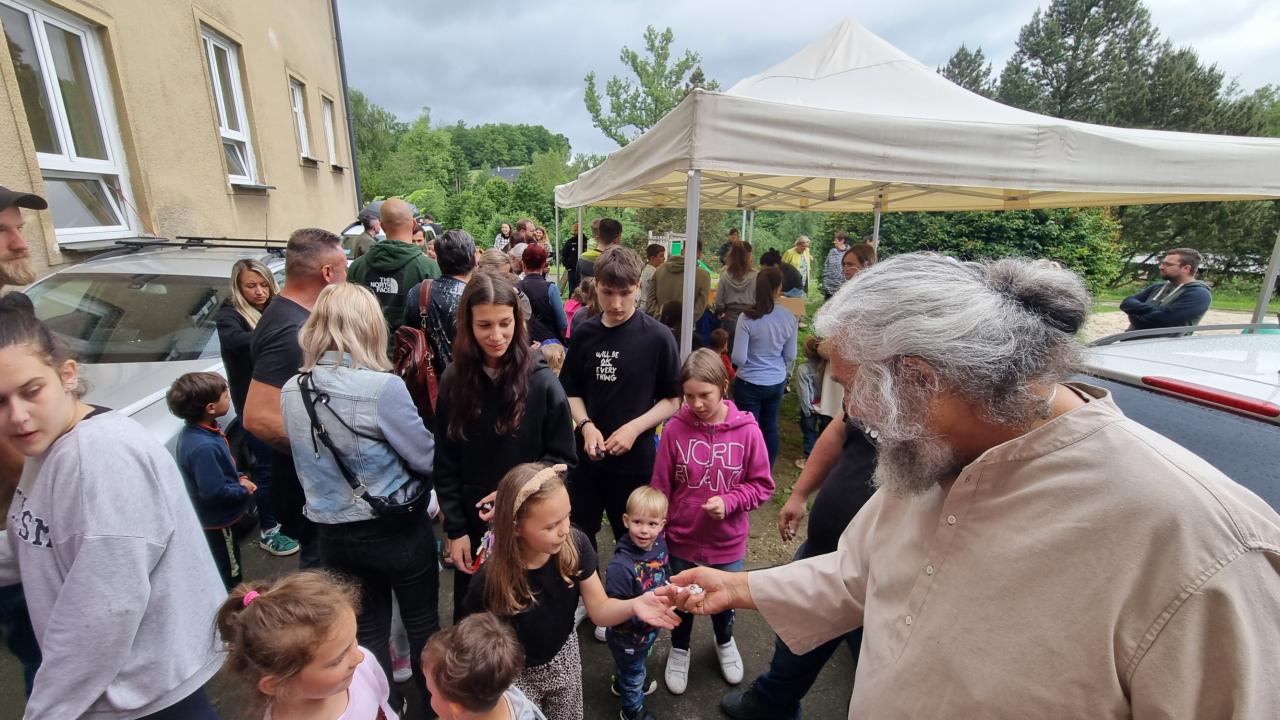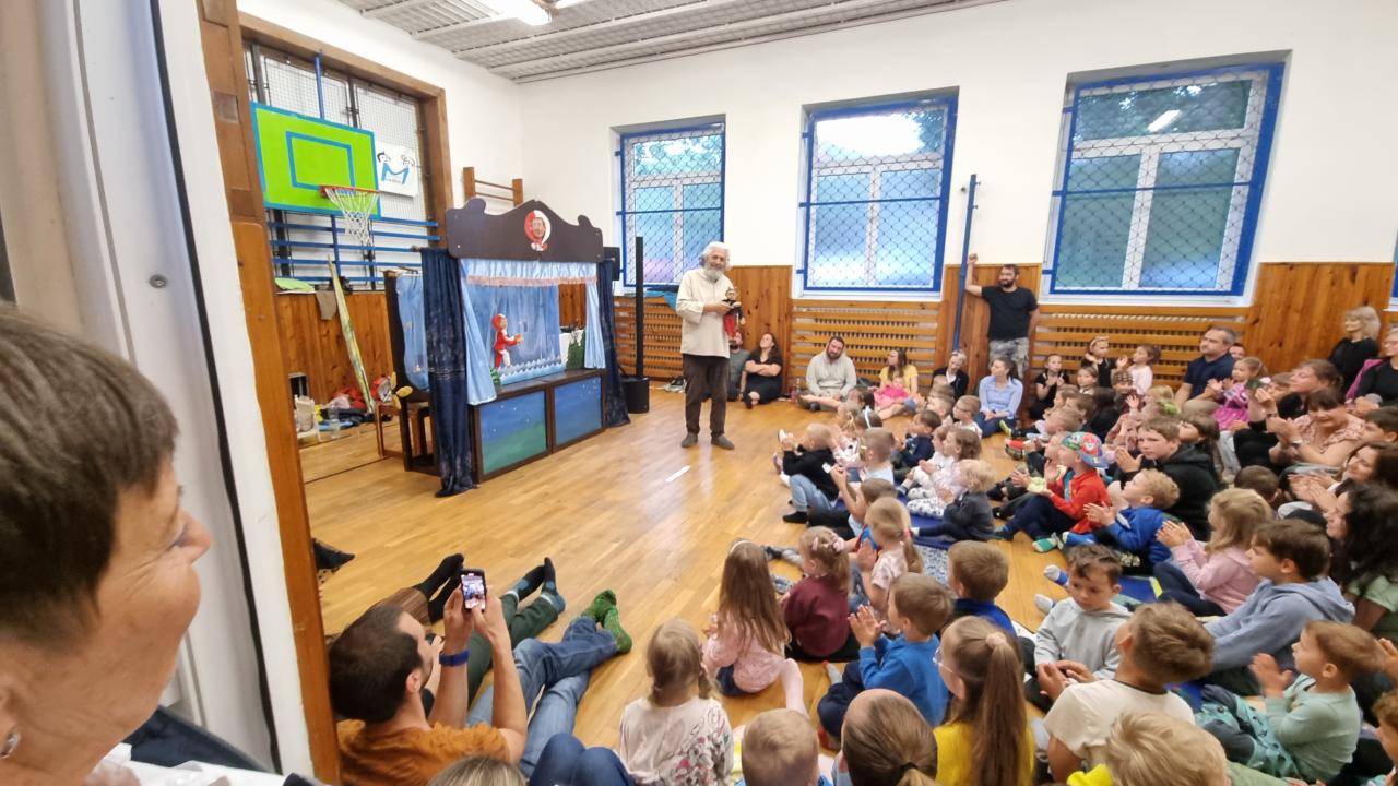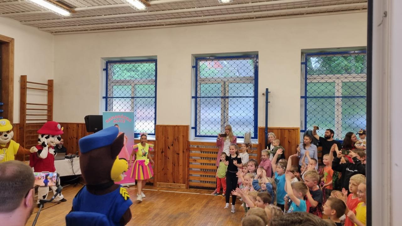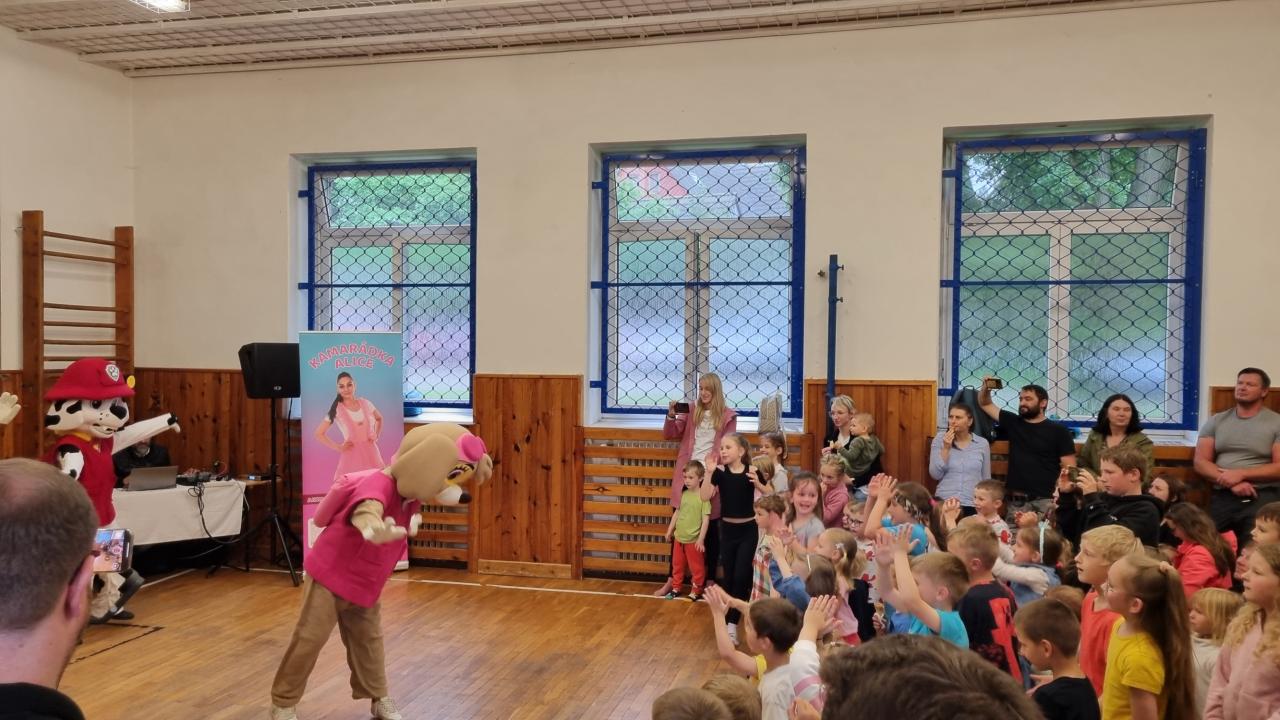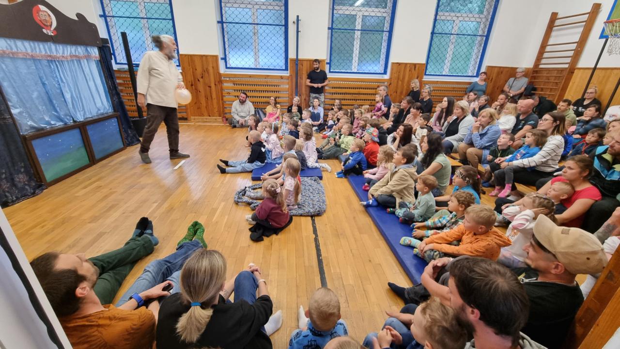 Tradiční divadelní představení jsme v roce 2025 museli operativně rychle přesunout do tělocvičny v základní škole, protože nepřízeň počasí a silný déšť by diváky odradil. Sváťovo dividlo a Tlapková patrola potěšila malé i velké diváky.